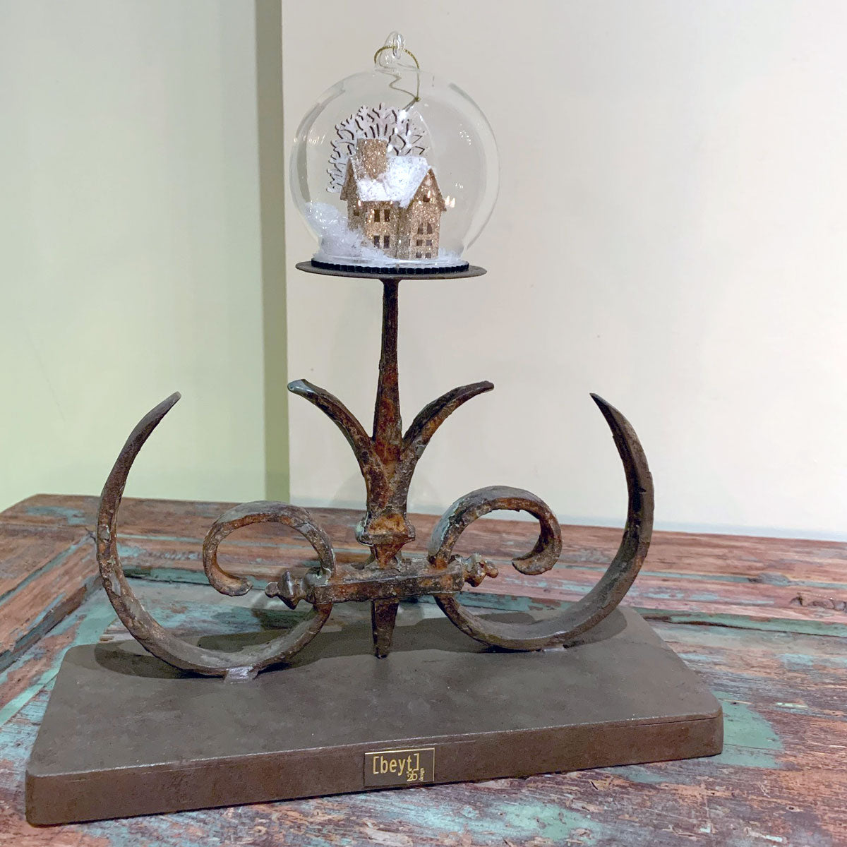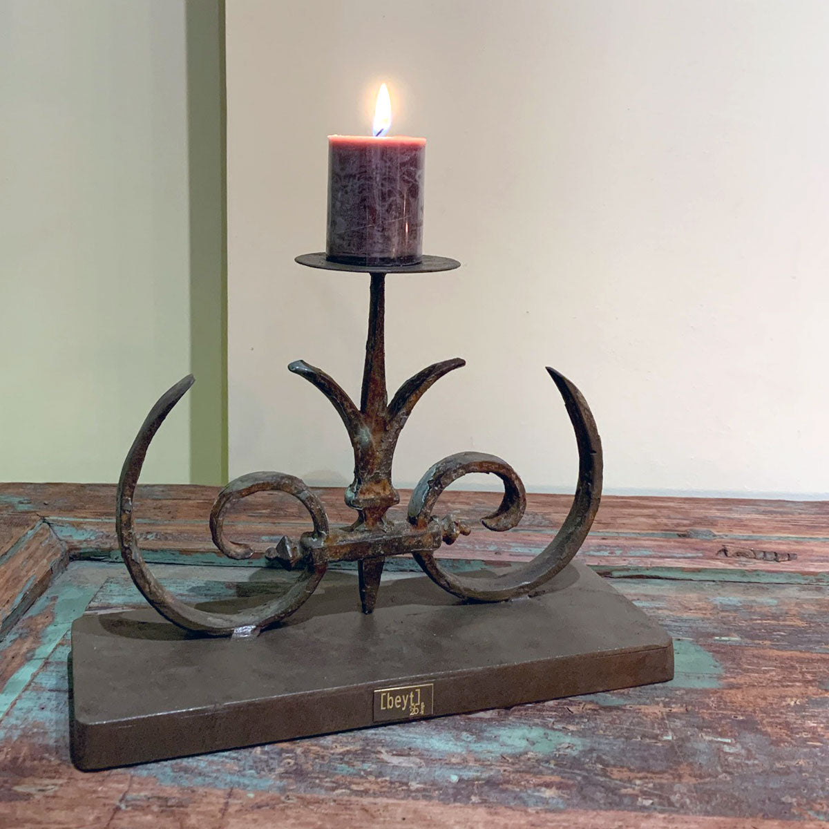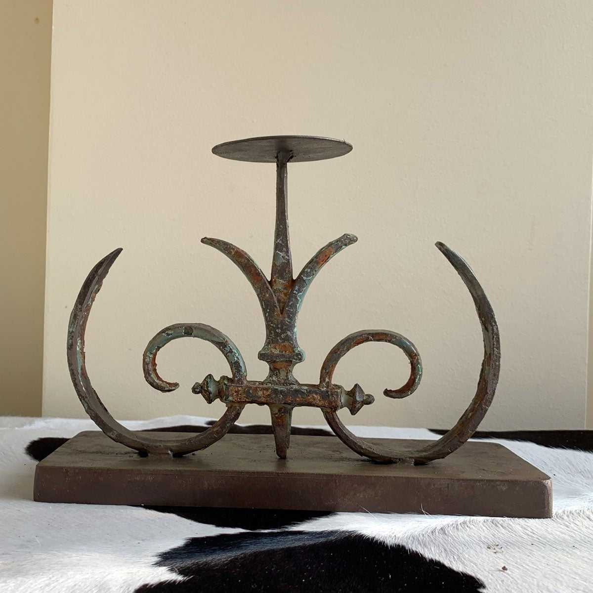 Parfois, redessiner de la récupération architecturale oblige à des gestes drastiques ! Ce qui était censé être un bougeoir en cœur est finalement un "cœur ouvert". On aime sa patine authentique, aux nuances subtiles de vert. Ce bougeoir unique en fer forgé sera superbe comme centre de table avec une simple bougie ou n'importe quel élément de décoration.