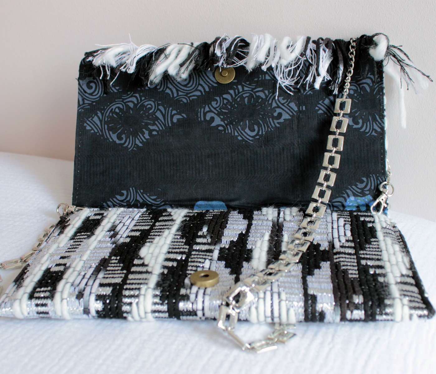 Elegant Handbag - Lightweight Handmade with Upcycled Black and White Tweed | Ethical Bag from Lebanon