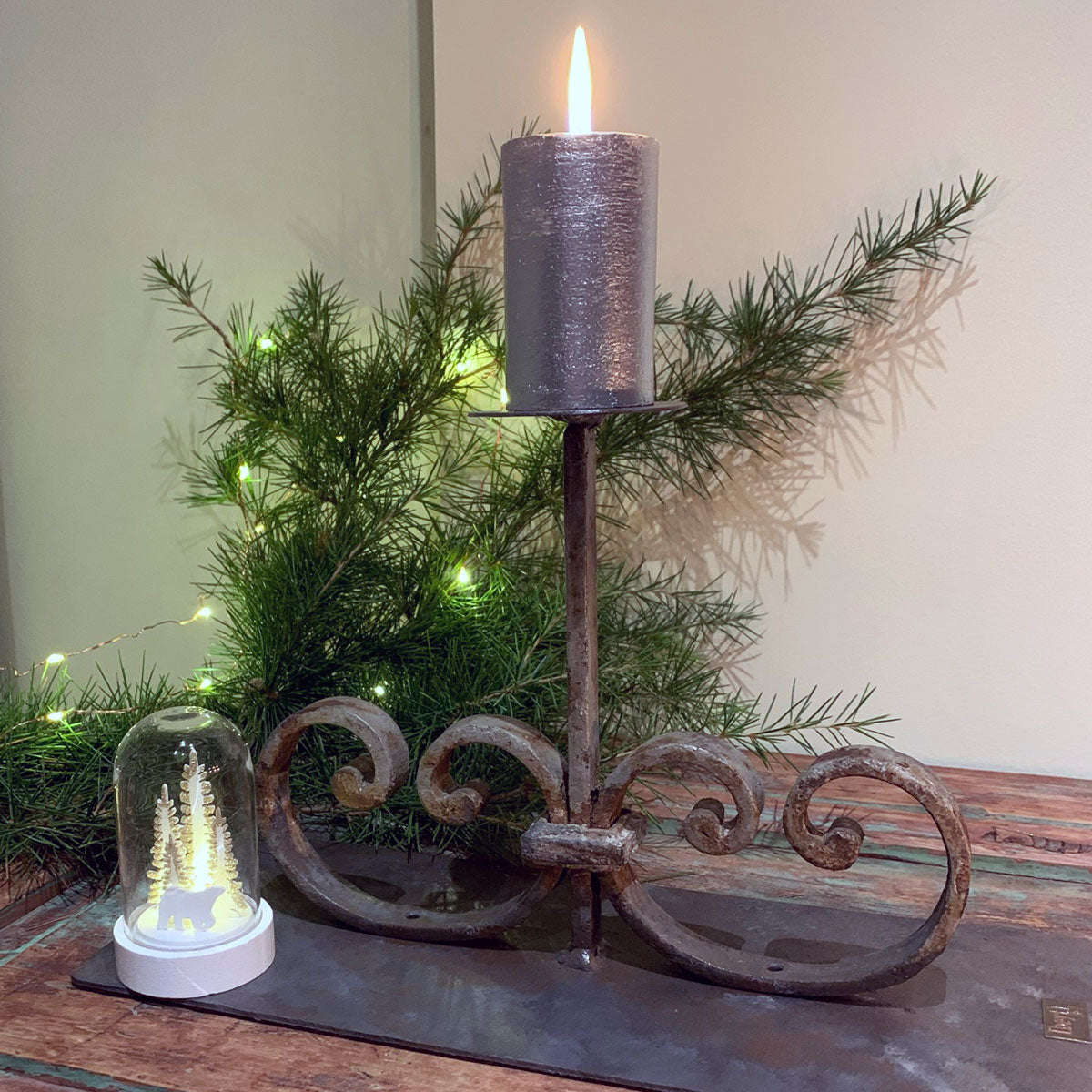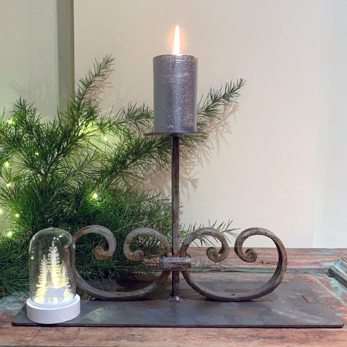 - Dressez la table avec art avec notre collection de bougeoirs en fer forgé. Recyclés à partir de récupérations architecturales trouvées en France, ils portent leurs cicatrices et leurs marques, preuve de leur authenticité et d'une histoire intemporelle de patrimoine et de beauté.