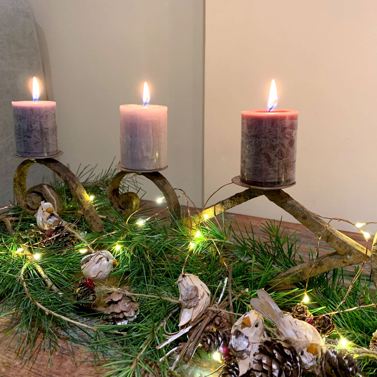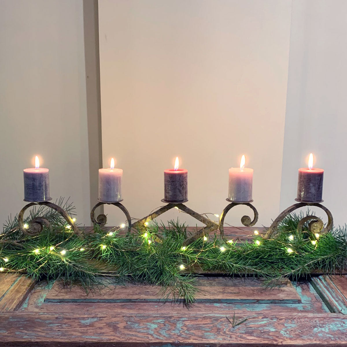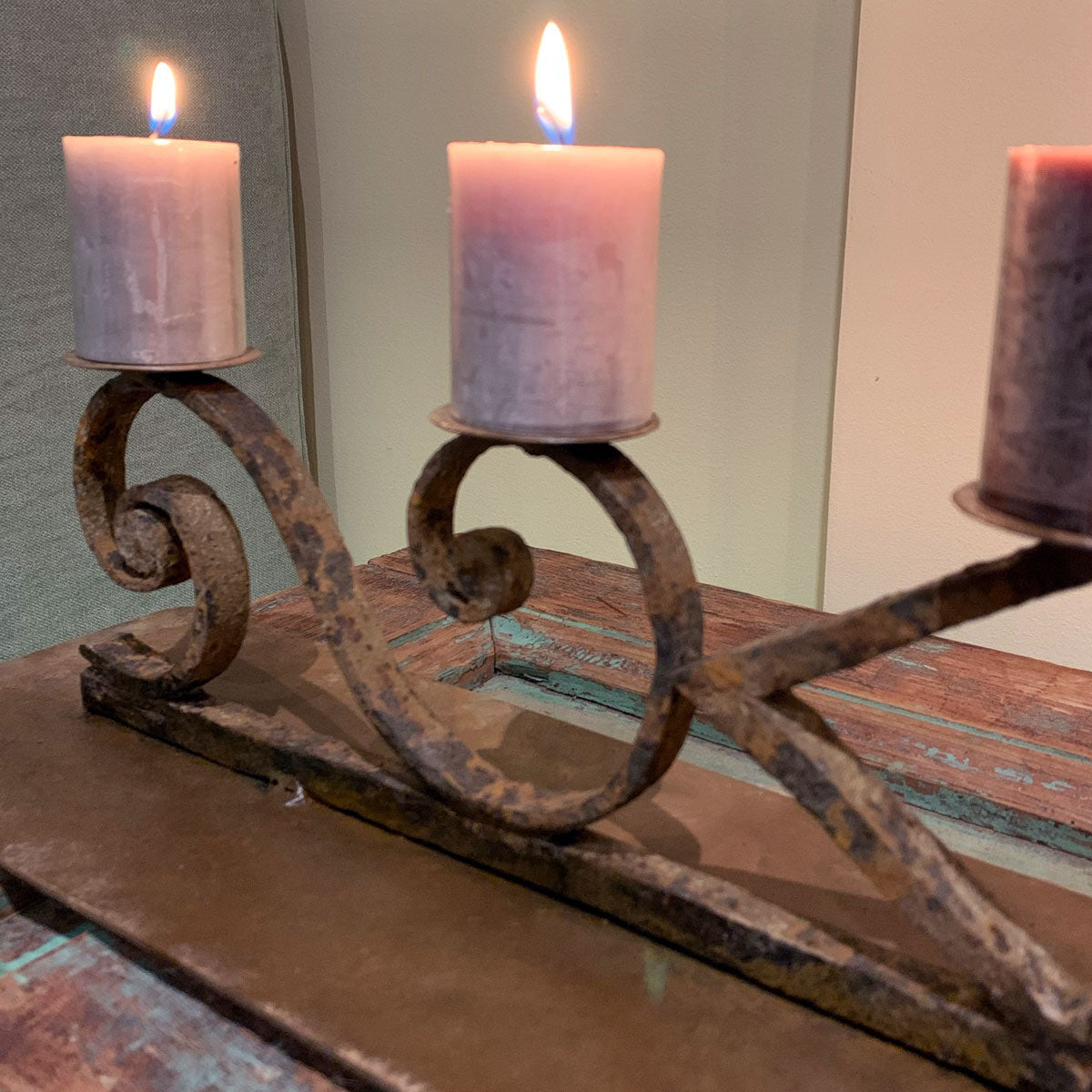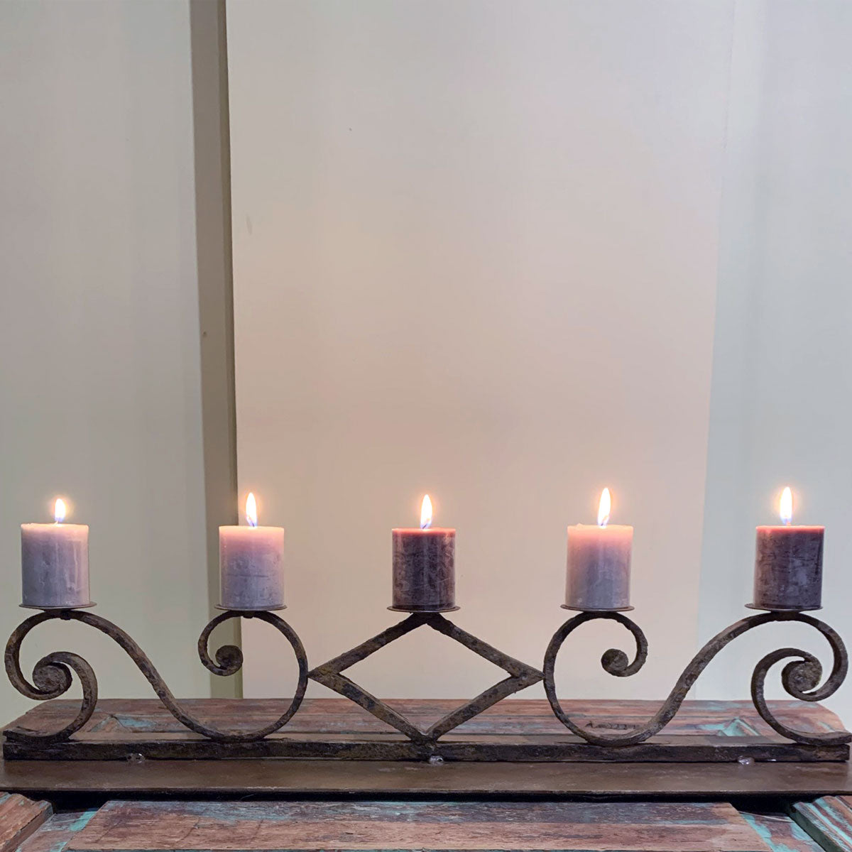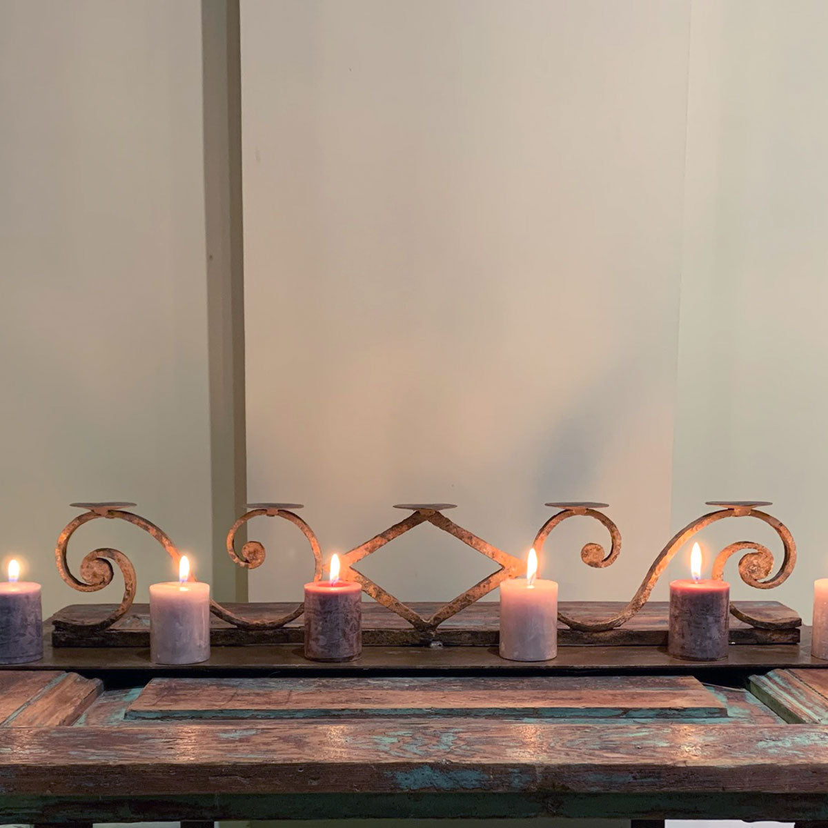 Transformez votre espace de vie, un manteau de cheminée ou une table avec ce chandelier à 5 coupelles ! Lorsque nous avons récupéré ce magnifique balcon du 18e, nous avons tout de suite su quoi faire de ses élégantes volutes. En fer forgé, le losange central est encadré de deux délicates vagues symétriques... d'où son nom. Les cinq coupelles accueillent des bougies ou tout élément de décor et la base est assez grande pour un arrangement floral.