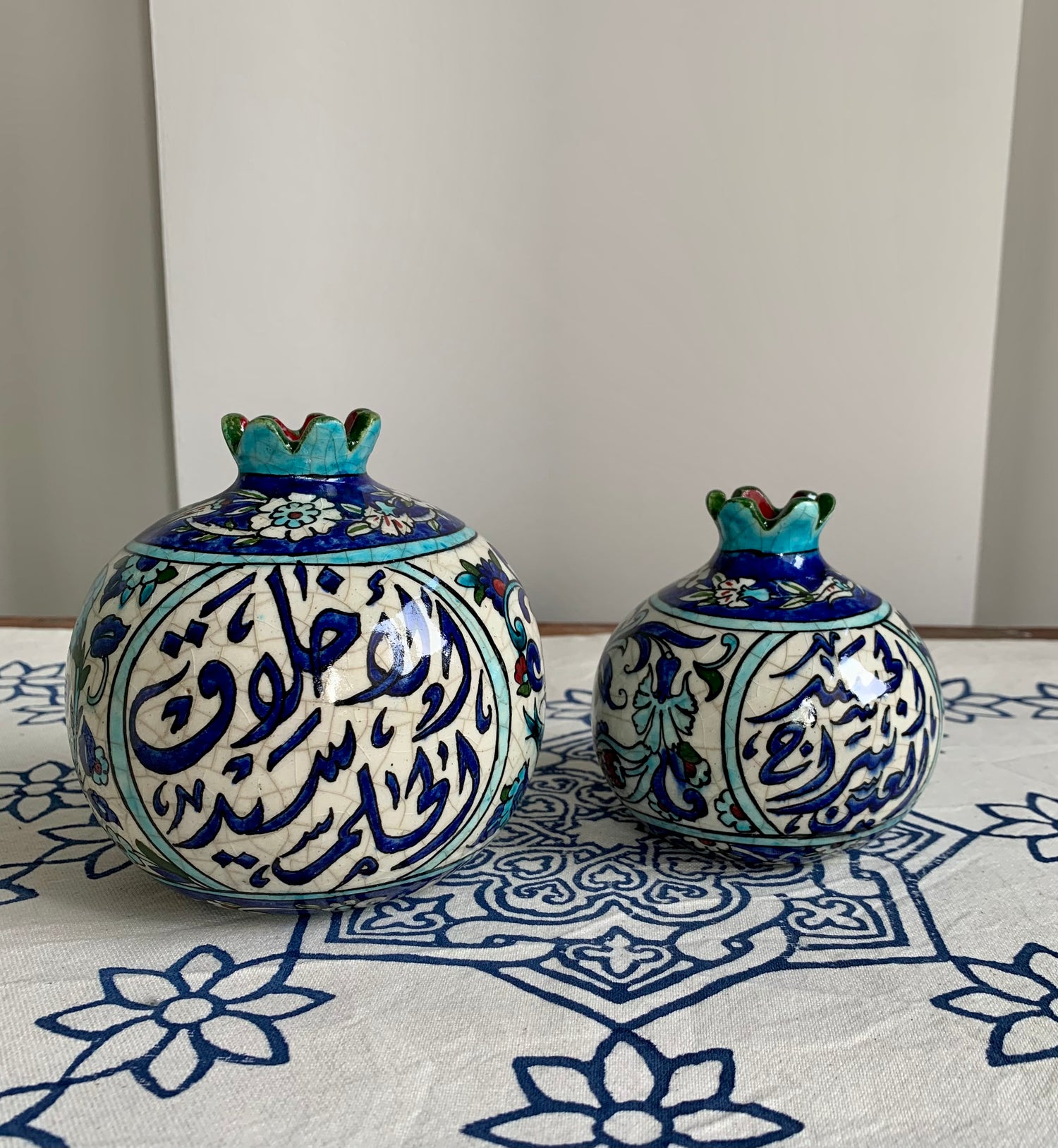 Arabic calligraphy is usually painted on the ceramic. The words used are usually qualities or positive words, such as love, compassion, strength, etc…