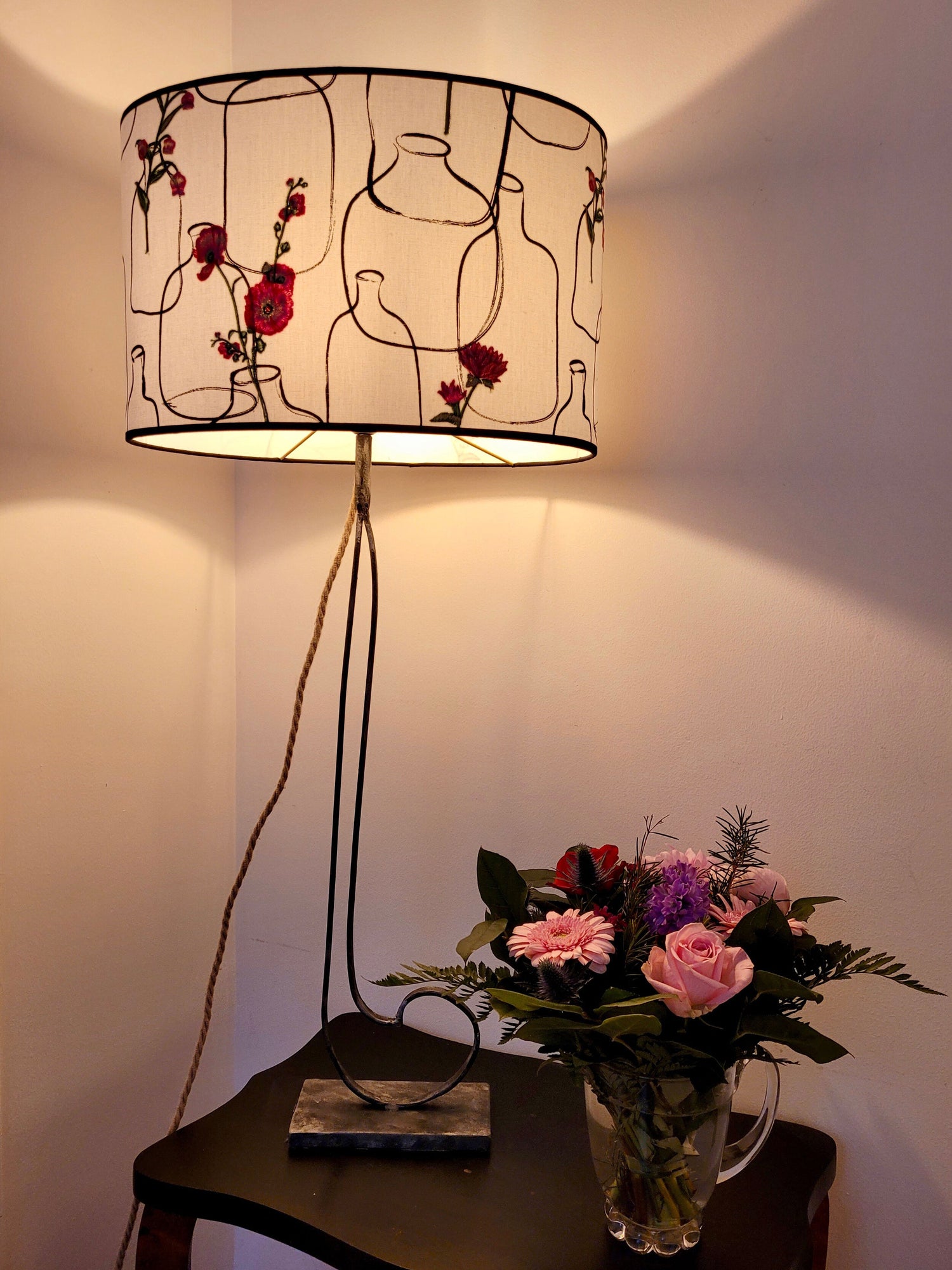 This svelte and high lamp has been upcycled from an ensemble of wrought iron elements from the 40s found in Lebanon.