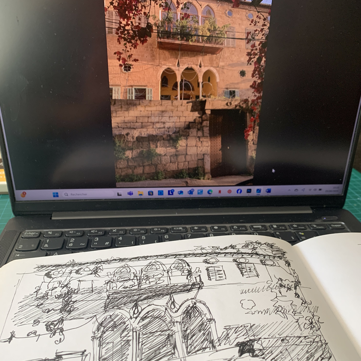 Original Watercolor Setting Sun on Bassili House in Beirut 40X40