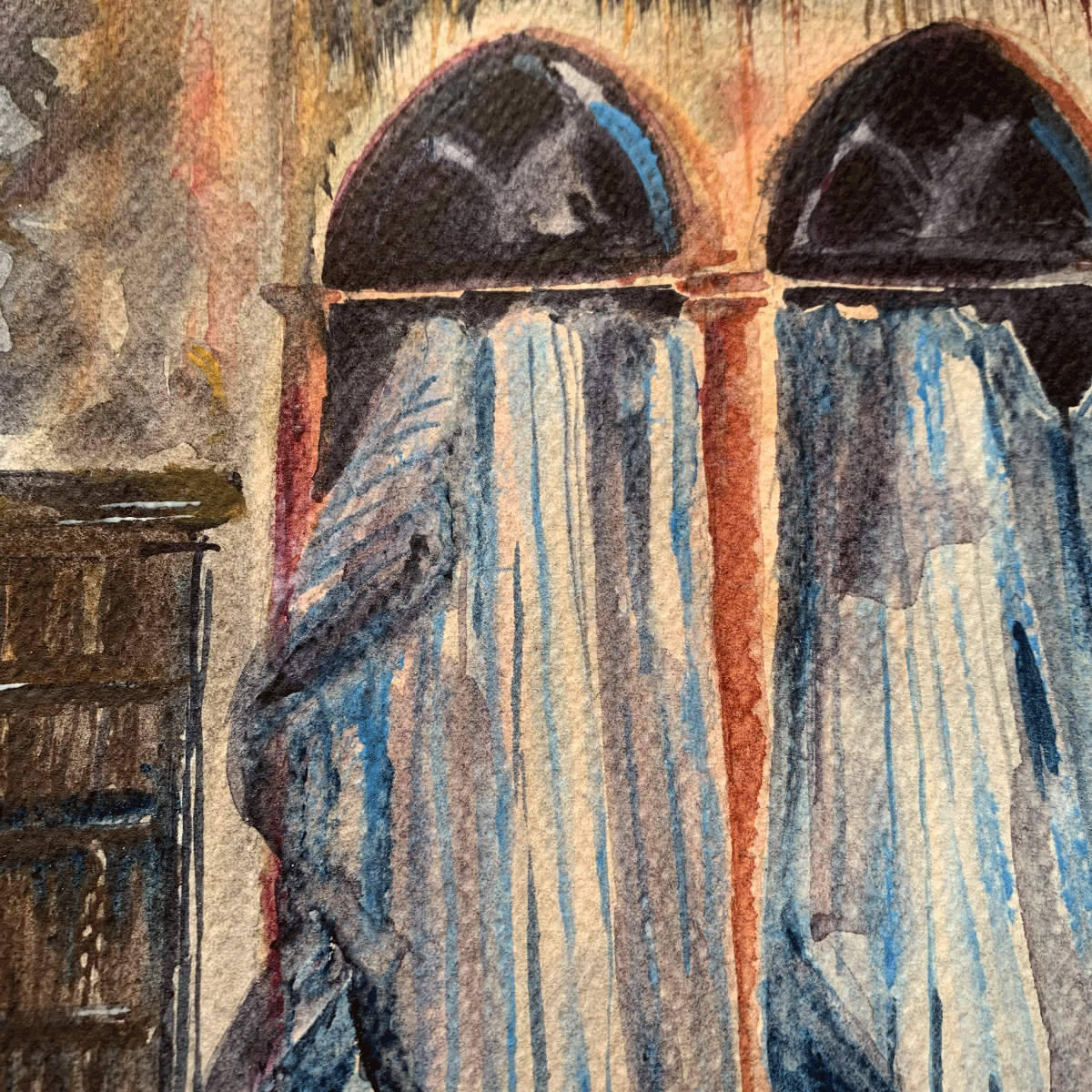 Original Watercolor The Blue Curtains Urbex Beirut 40X30