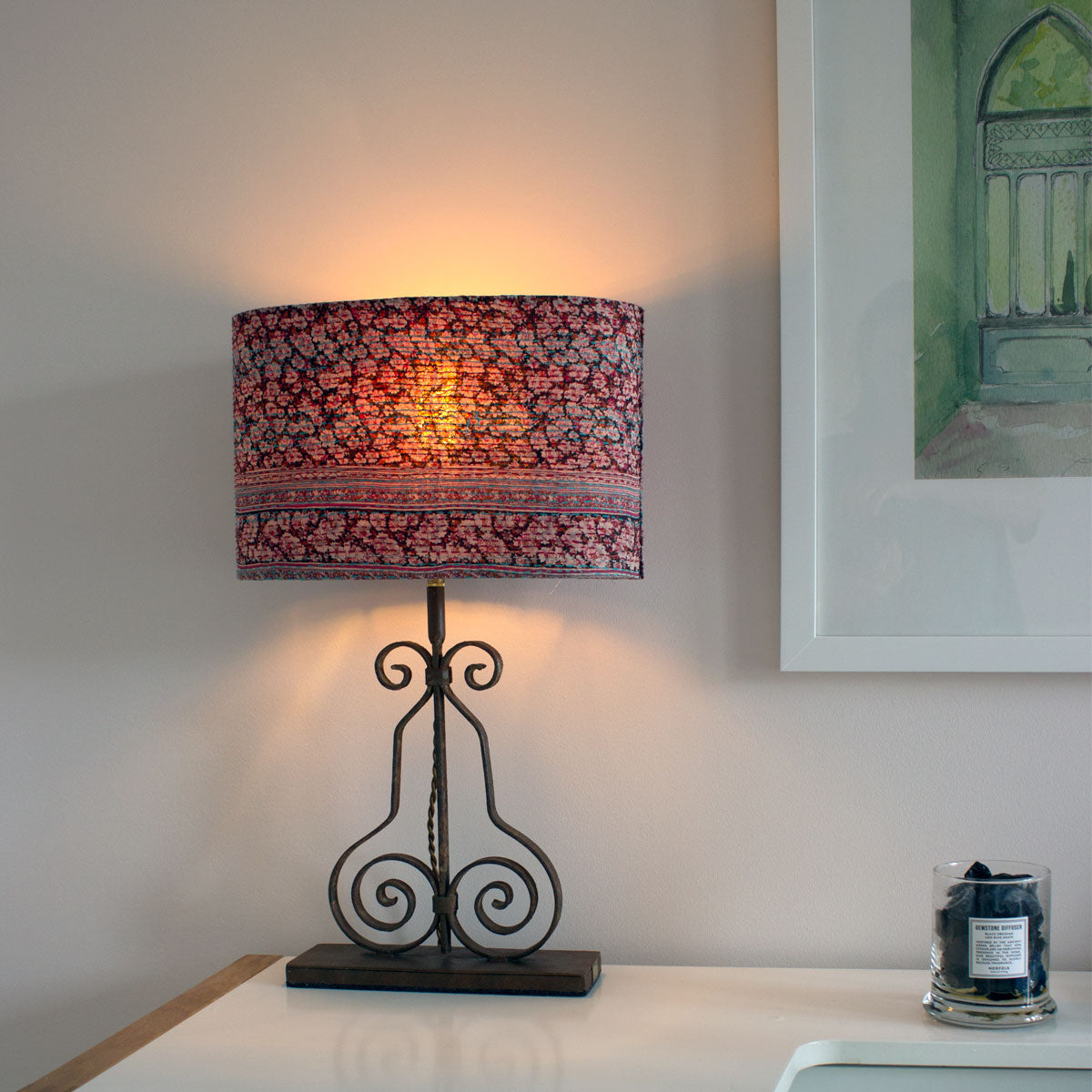 Nous avons trouvé cette grande balustrade à Beyrouth, au Liban, et l'avons transformée en plusieurs pièces. A partir de récupération architecturale du début du XXe siècle, nous avons recyclé la lampe de table "Bela" qui peut trouver sa place partout dans la maison. On peut encore voir les marques du temps, preuve de l'authenticité de cette pièce unique. Nous avons associé la lampe à un abat-jour ovale en soie Kantha vintage d'Inde avec des teintes de rouge foncé, de noir et de bleu gris. L'abat-jour est étroit et permet de disposer la lampe sur une petite table.