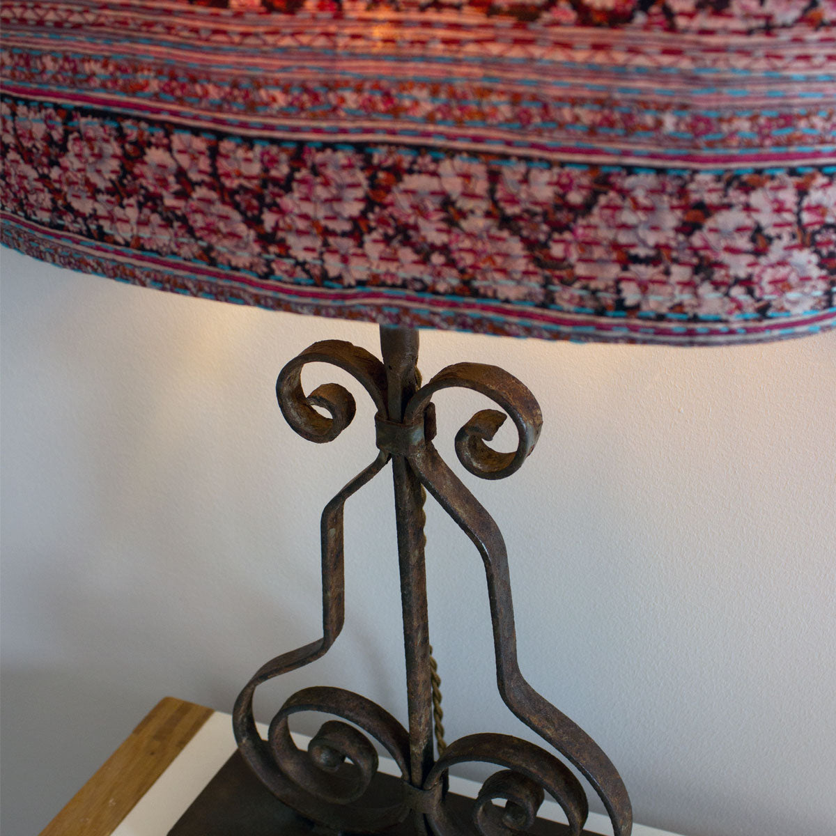 Lampe de table Bela recyclée à partir de récupération architecturale et abat-jour Kantha