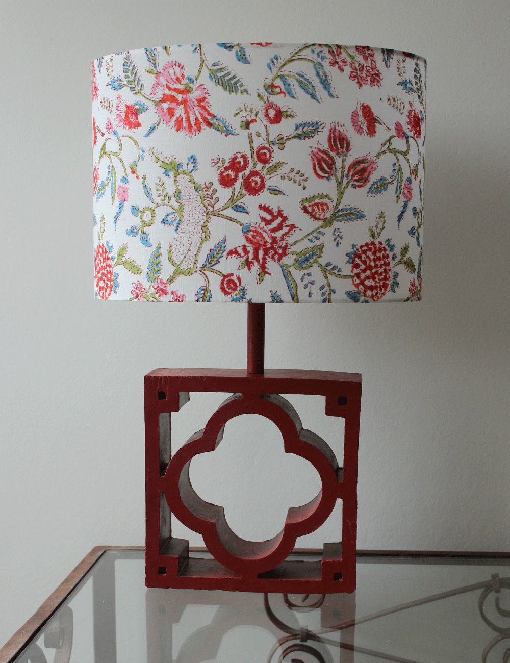 Claustra, a staple of Mediterranean architecture, serve as both practical and aesthetic elements, allowing air to circulate while casting shadows for shade. Having salvaged a few in Beirut, I envisioned repurposing them into charming table lamps. Originally crafted from clay, they've been revitalized with velvet red paint. Paired with block-printed cotton lampshades, these unique creations bring a touch of Mediterranean flair to any corner of your home.