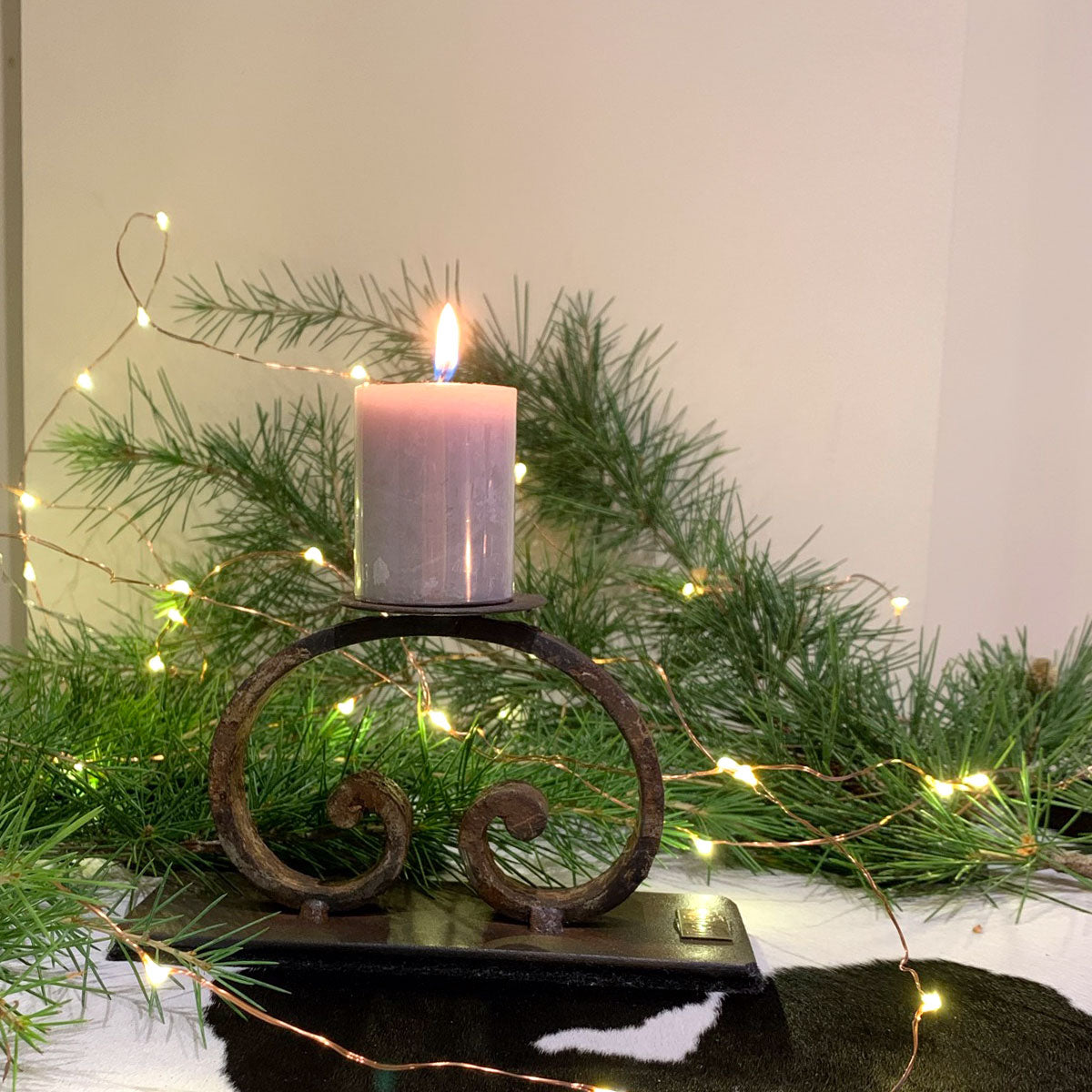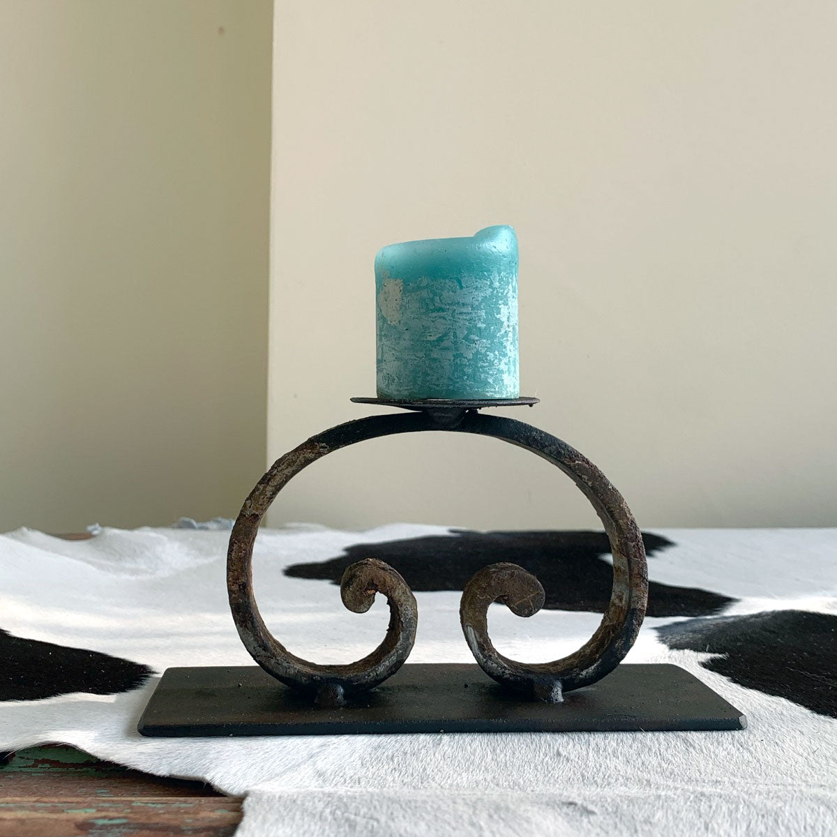 Cet irrésistible petit bougeoir en fer forgé recyclé apportera une âme à n'importe quelle pièce. Nous avons pu sauver ce petit élément, partie d'un grand portail ancien récupéré en France. Simplement posé sur un socle en métal, il peut accueillir une bougie ou être un élément de décor pour une table de fête.