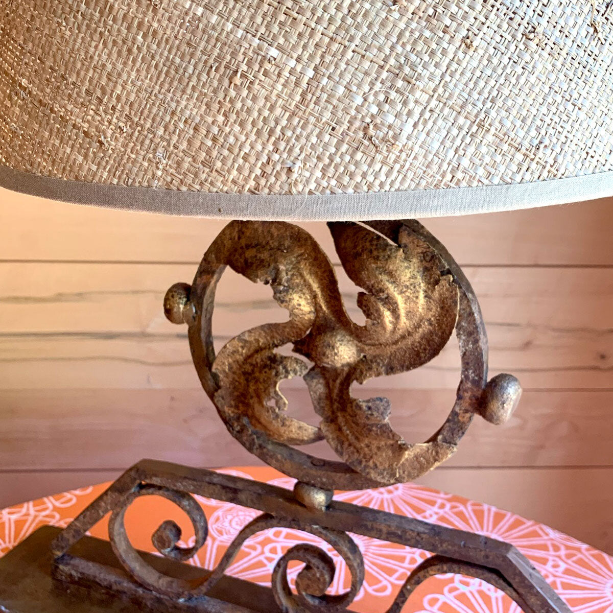 Nous avons craqué pour ce portail récupéré en Bourgogne, France. Ces cercles alignés aux ailes brisées ont tant de charme. Nous avons essayé de le recycler sans le déformer. Les "ailes" sont légèrement recouvertes d'or. LA LAMPE EST VENDUE SANS ABAT JOUR ET LEGEREMENT INSTABLE EN SON CENTRE; UN LEGER TRAVAIL DE SOUDURE SUFFIRA A LA CONSOLIDER