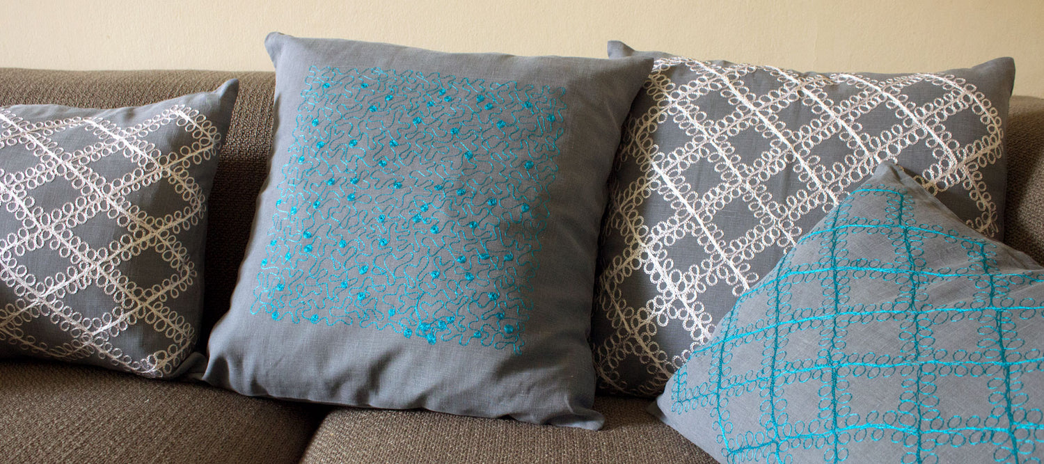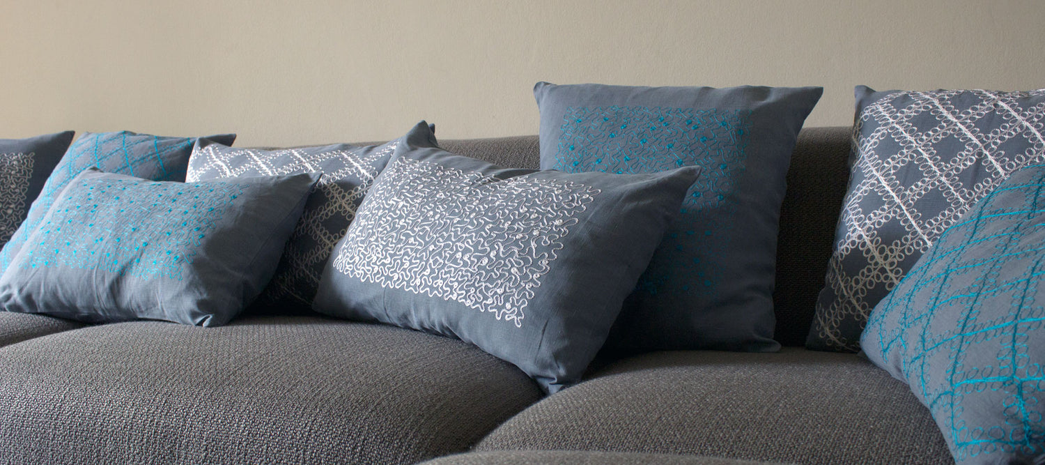 Each pillow case demands several hours of work and requires a perfect coordination hand-eye, with a specific embroidery machine.