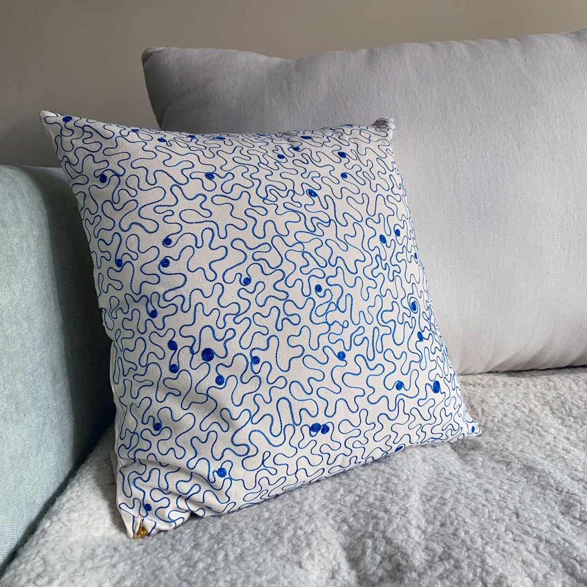 Try this lovable pillow embroidered with the “Aghabani” technique practiced in Syria for more than 150 years and follow the line! Several hours are needed to execute a single pillowcase. A gorgeous design available in 2 different blue.