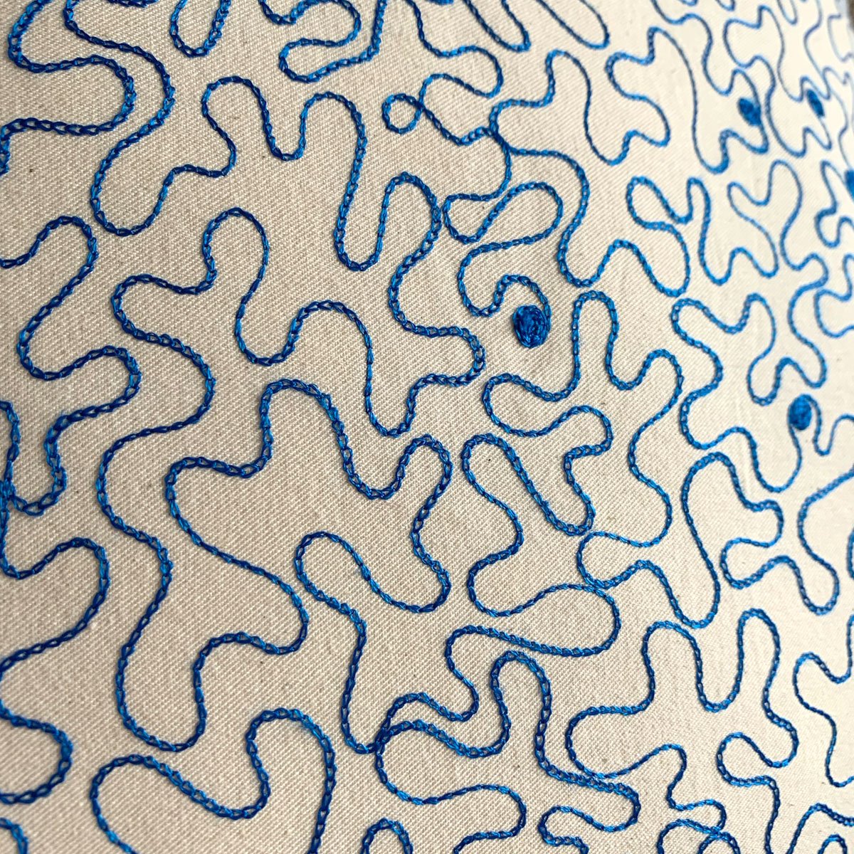 Off-white raw cotton and embroidered thread in Turquoise or navy blue