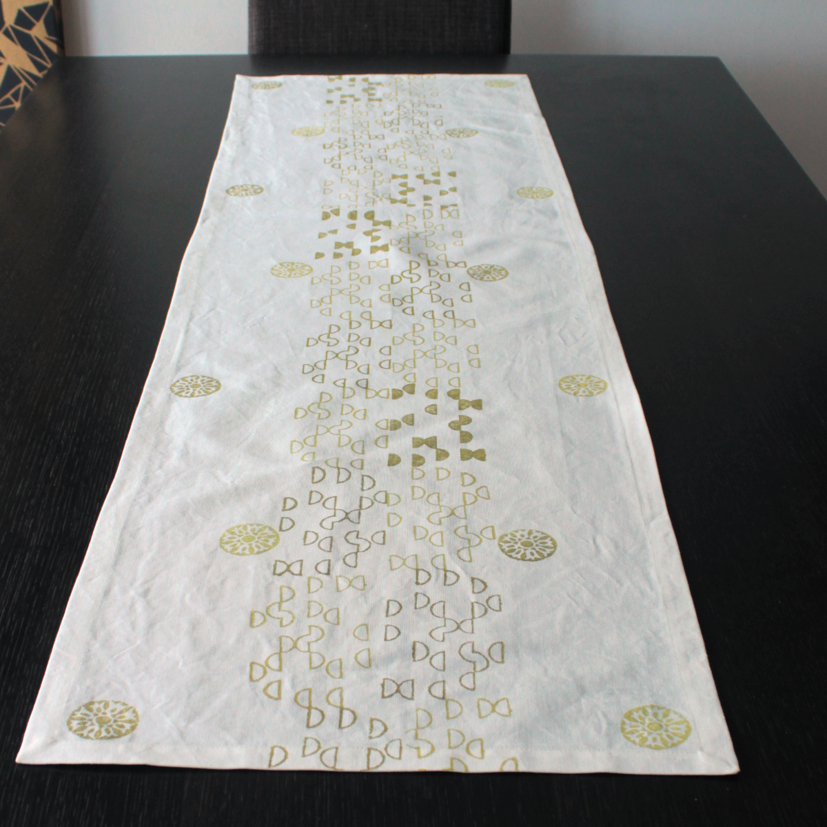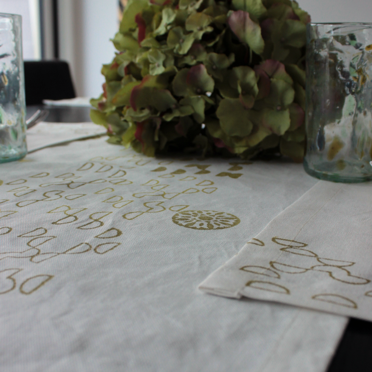 Half Circle Block Printed Linen Runner and Placemats in Ochre