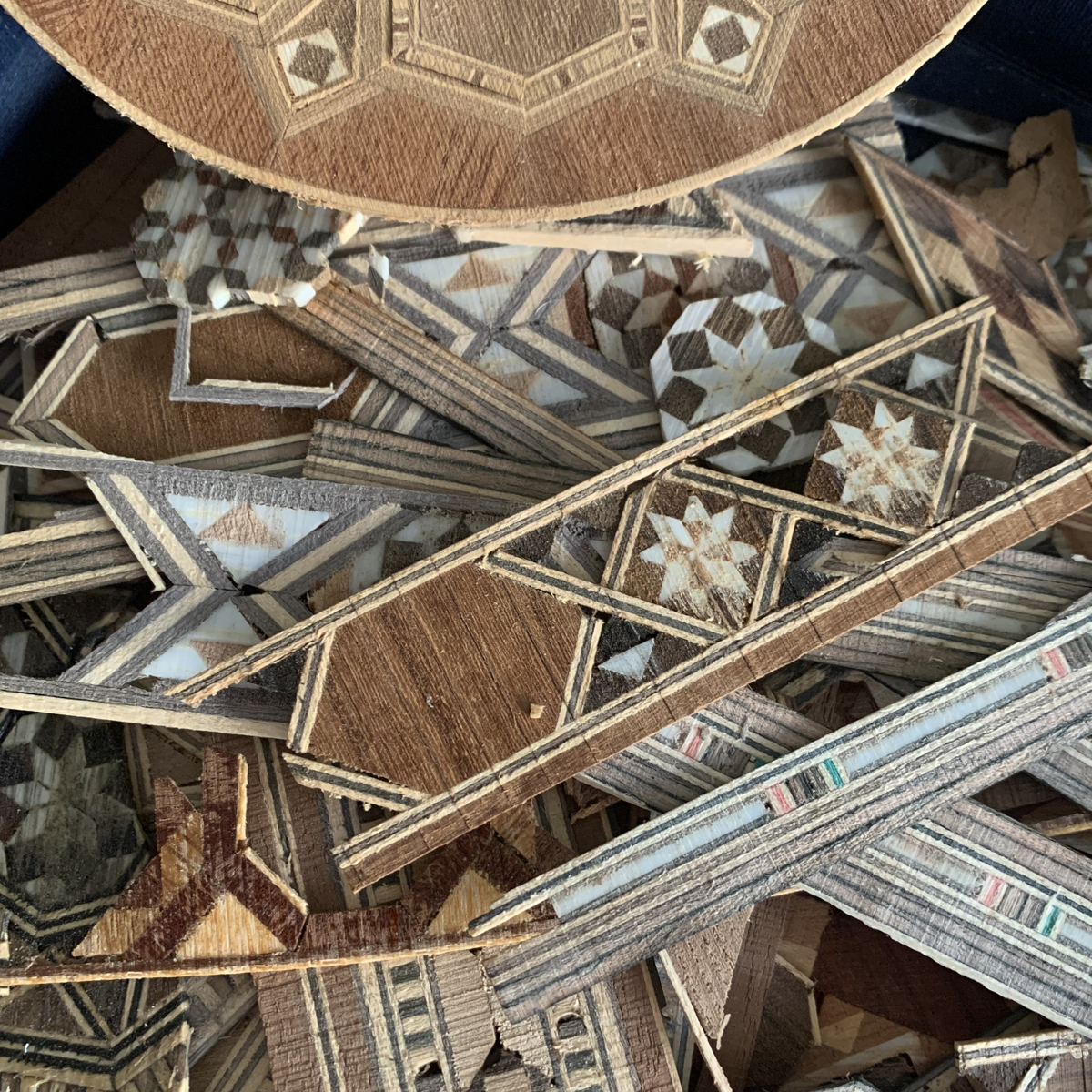 I pictured summer evenings and thought of those who built this place, hoping it would become a home for their children. Using paper and marquetry, I added a touch of green. A steaming cup of coffee suggests a moment of stillness — an invitation to reflect on what once was: imagined, built, and hoped for.