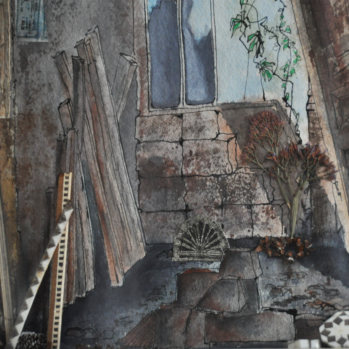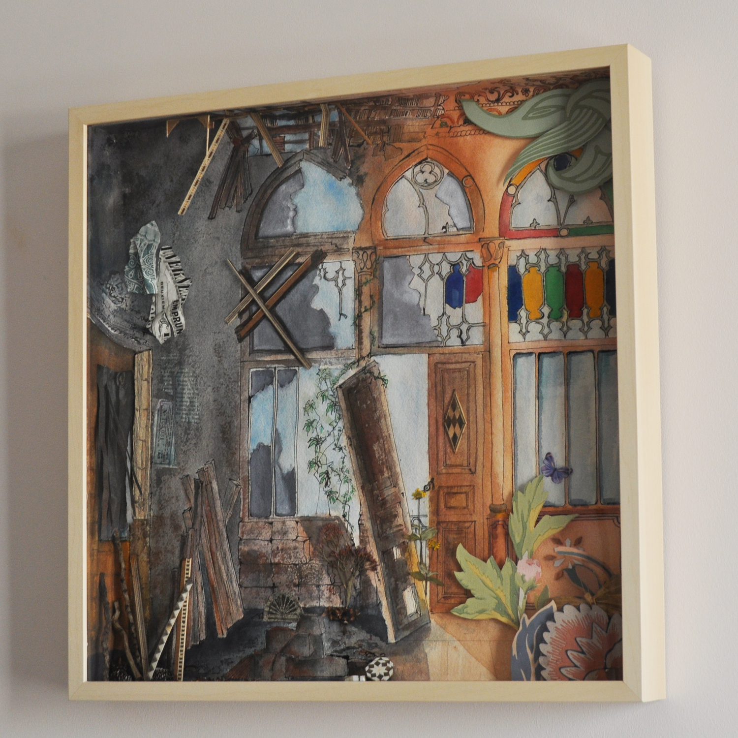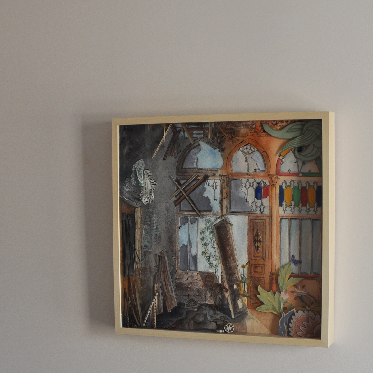 You can read this watercolor from right to left or left to right. It tells the story of an arched house in Beirut, born from my imagination — and it's unclear whether it is heading toward destruction or rebirth. It invites us to dream of what once was and what may be: do we still have the will to revive beauty, or are we already powerless in the face of time’s ravages?