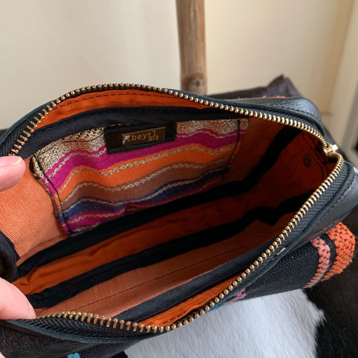 This bag has been handcrafted in Beirut with our private collection of Haute couture fabrics and gorgeous leathers from French luxury brands deadstock. Each item is unique, designed by [beyt].and made by Koko, our partner artisan in Lebanon.